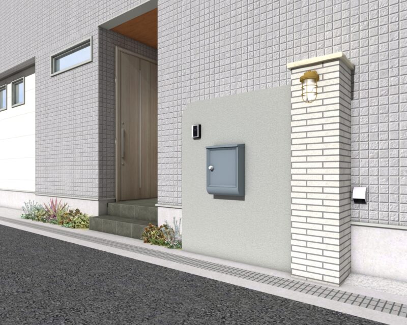 夜の照明計画は、門柱のアッパーライトと、カーポートの梁下のオリジナルダウンライト3ヶ所。ナイトシーンもカッコ良く仕上がりました。