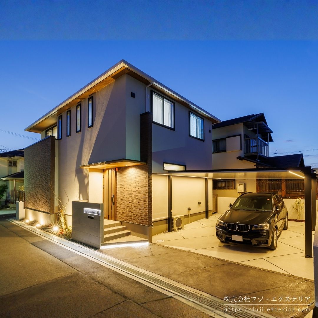 北摂地区の閑静な住宅地で シンプルモダンなエクステリア が完成しました。