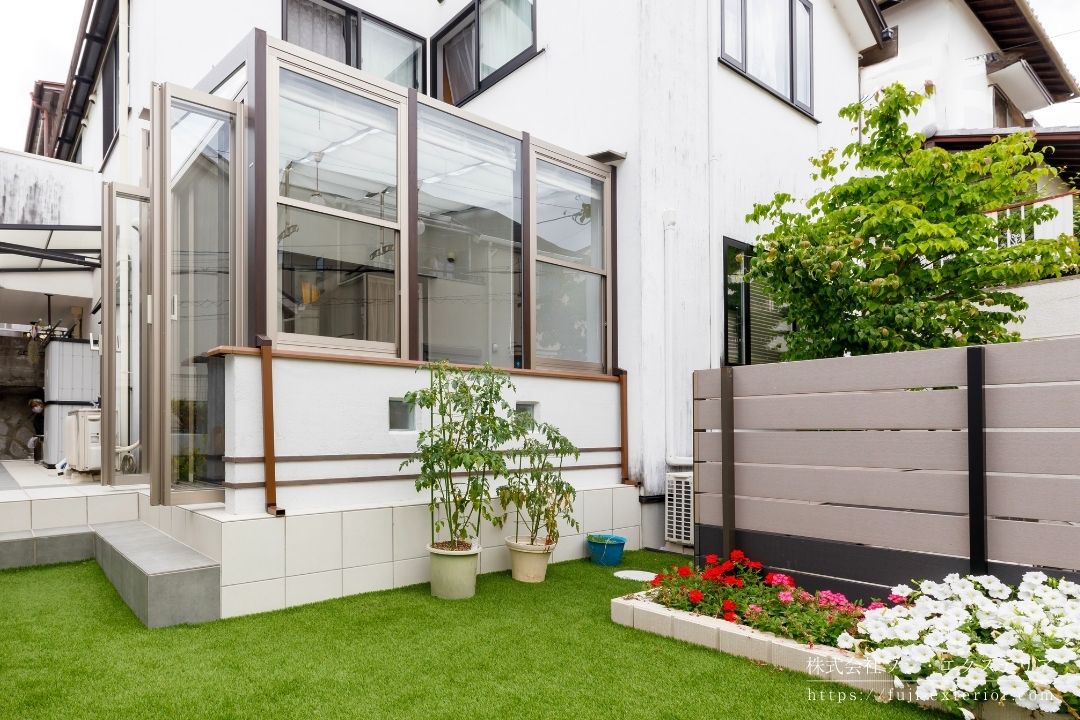 S様との出会いは弊社ホームページからでした。白い漆喰壁が印象的な和風邸宅でしたが、広いお庭がお子様の遊び場として活用しきれていないという課題がありました。