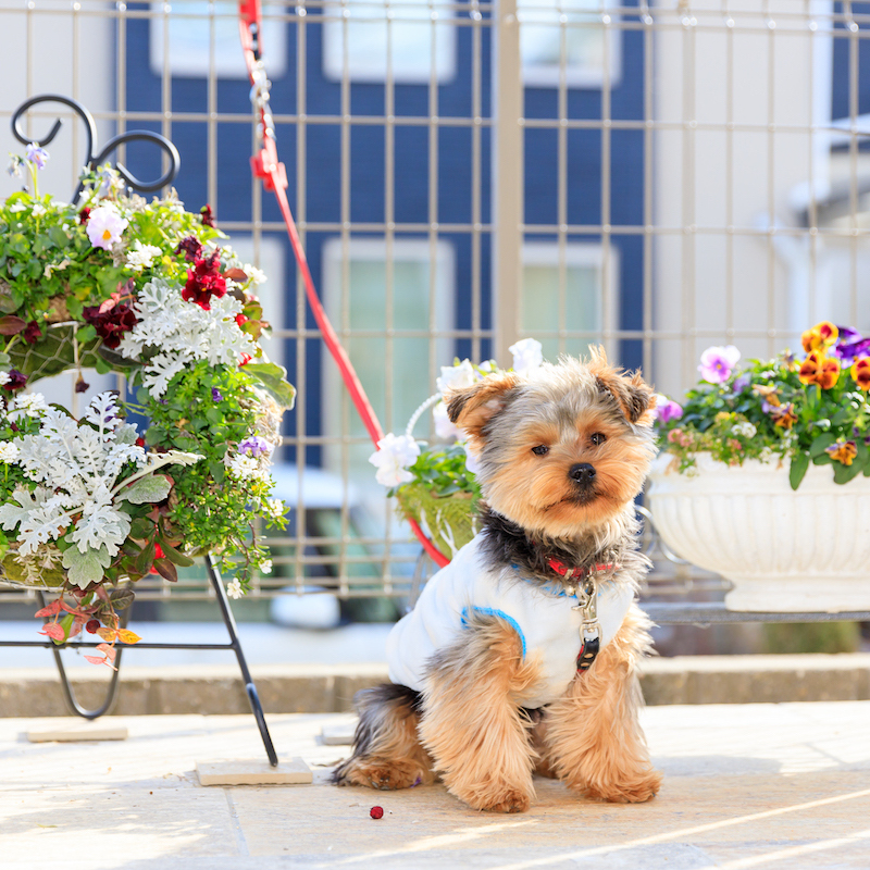 自粛期間の中、どうしてもお家で過ごす時間が長くなる中、こんなに素敵なテラスが出来たら嬉しくなりますね。全体的な印象もとても気に入って下さり、新しく家族に加わったワンちゃんと一緒に楽しく過ごすお庭。ご家族とも更にたくさんの大切な思い出を築いて頂きたいと思います。