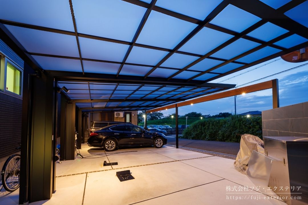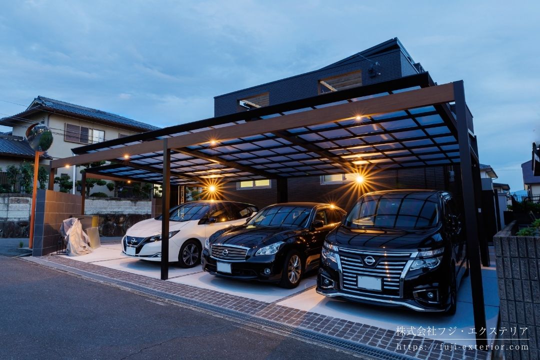 おしゃれな外構, カーポート 2台用, フジエクステリア, 外構 大阪 おしゃれ, 後方支持カーポート