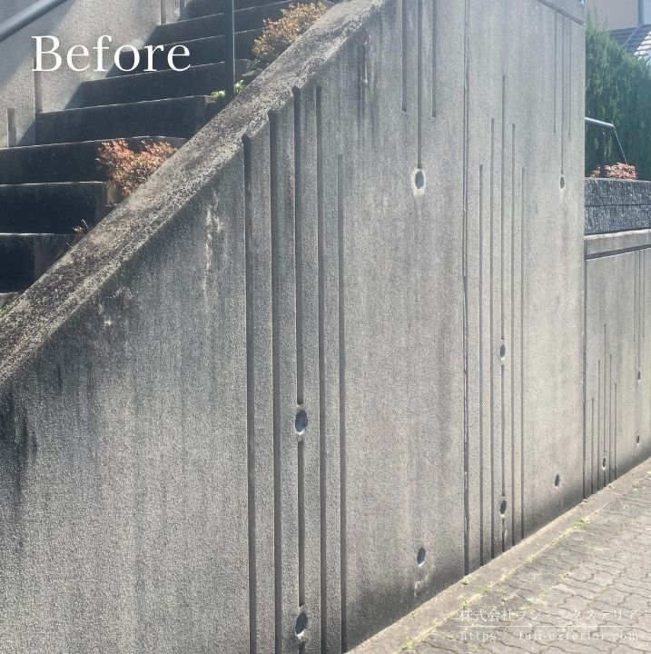 高いRC擁壁は、全面にスタッコ吹付塗装をしてスッキリきれいになりました。