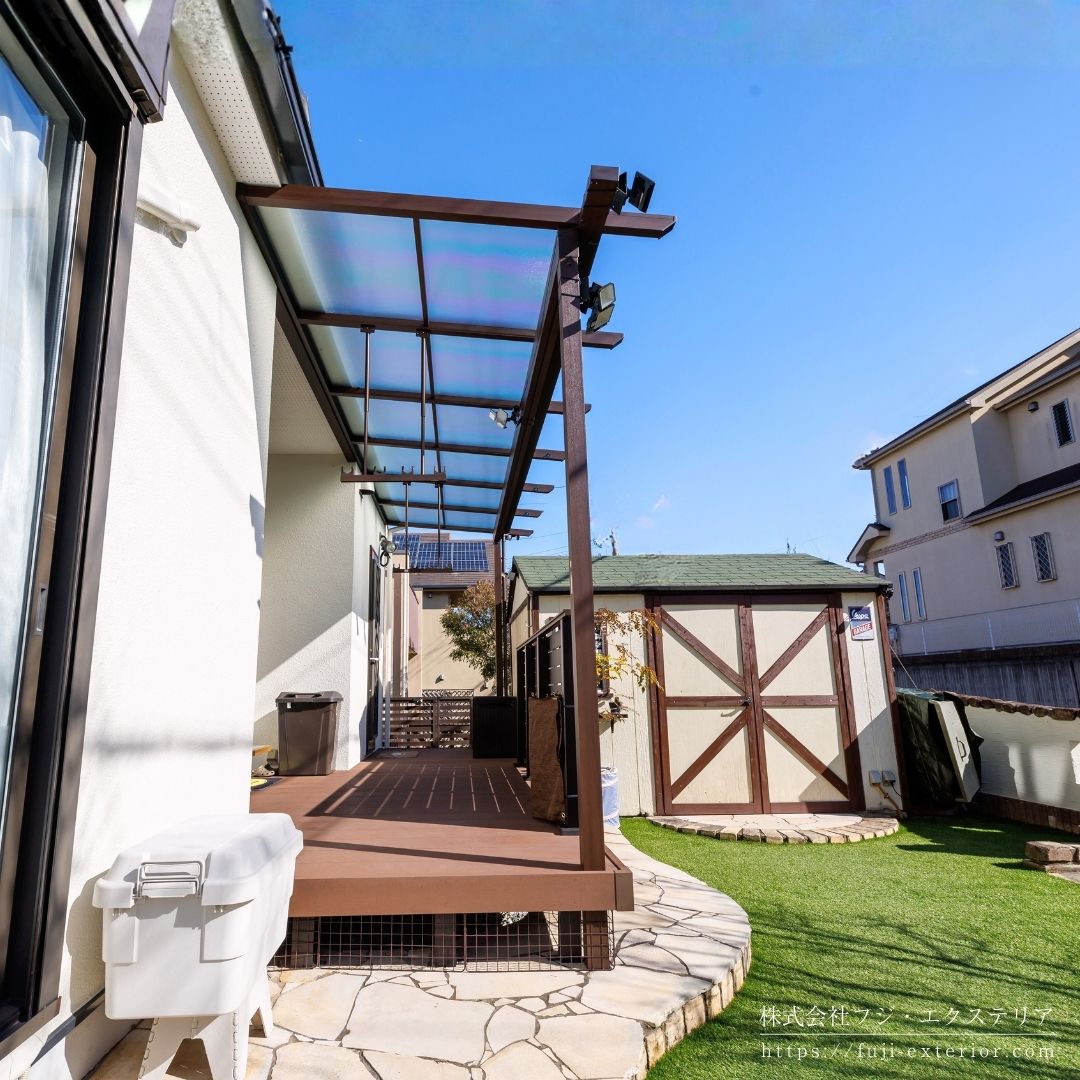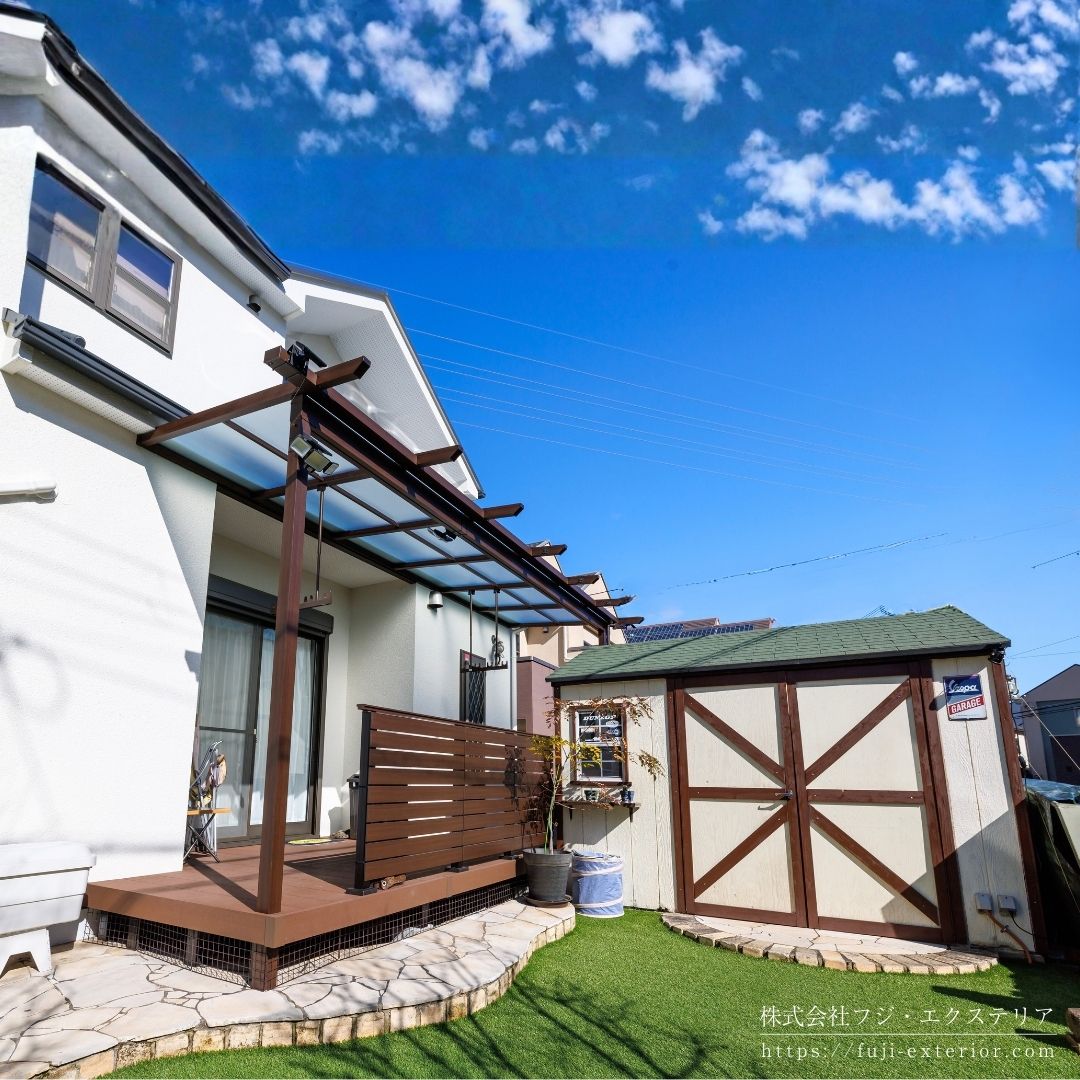 ウッドデッキ, おしゃれな外構, ガーデンルーム, カーポート, シャッターガレージ, フジエクステリア, 外構 大阪
