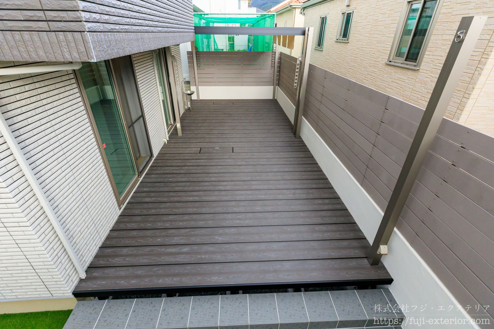 北摂の閑静な住宅街でのリノベーション工事です。着工前は木製のデッキとココマテラスが付いていましたが、木製デッキが経年劣化で朽ち、床板が抜けそうになっていました。