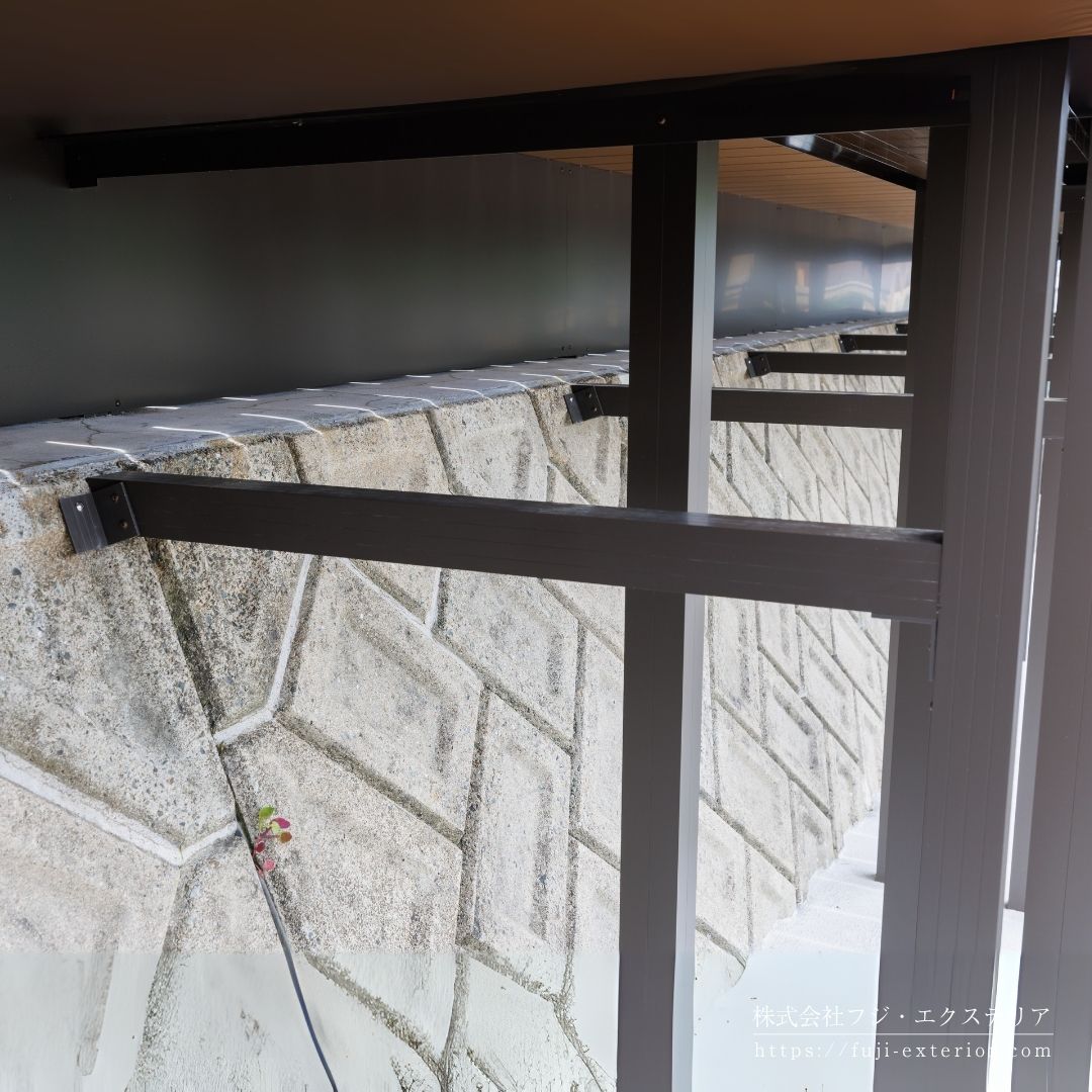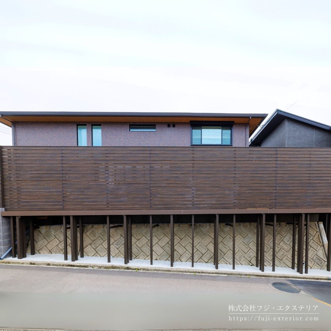 柱が移動できる柱奥行き移動タイプ + リウッドデッキ:雨風の吹きこみ対策に有効です。