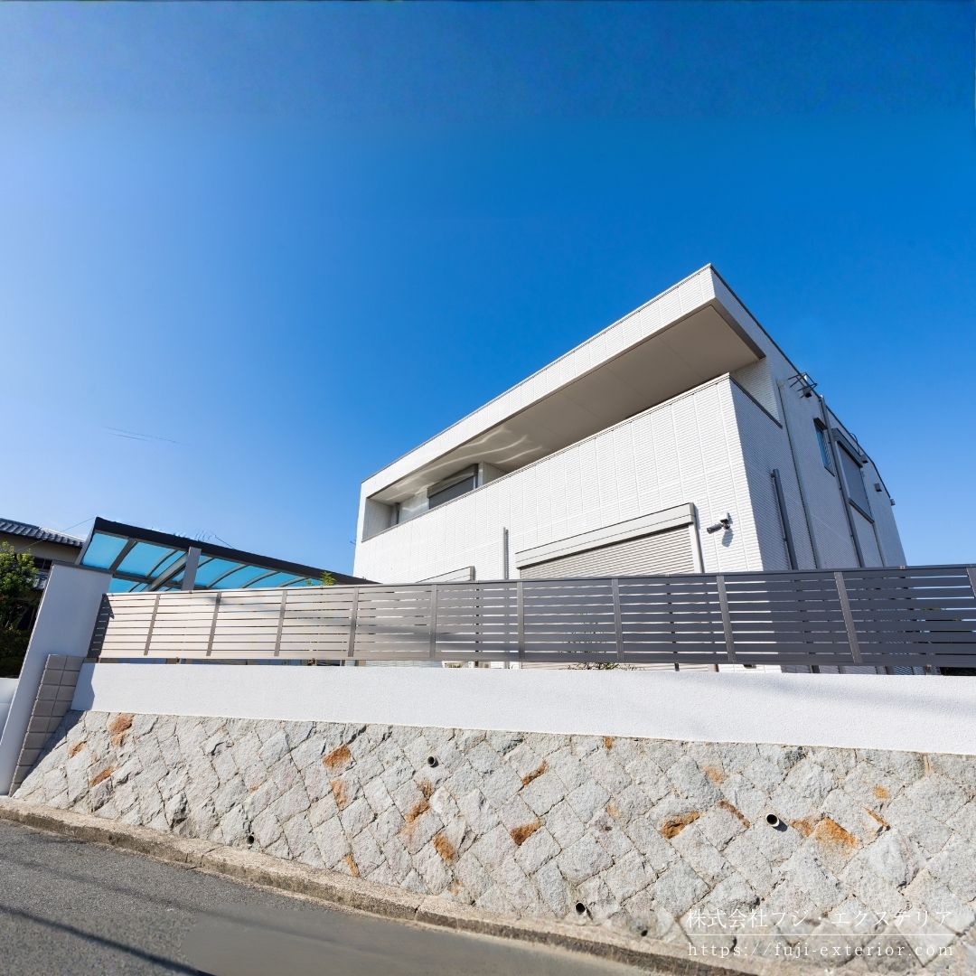 大阪で人気の高級住宅地の角地で一際目立つホワイトカラーが素敵な邸宅のクローズ外構が完成しました。